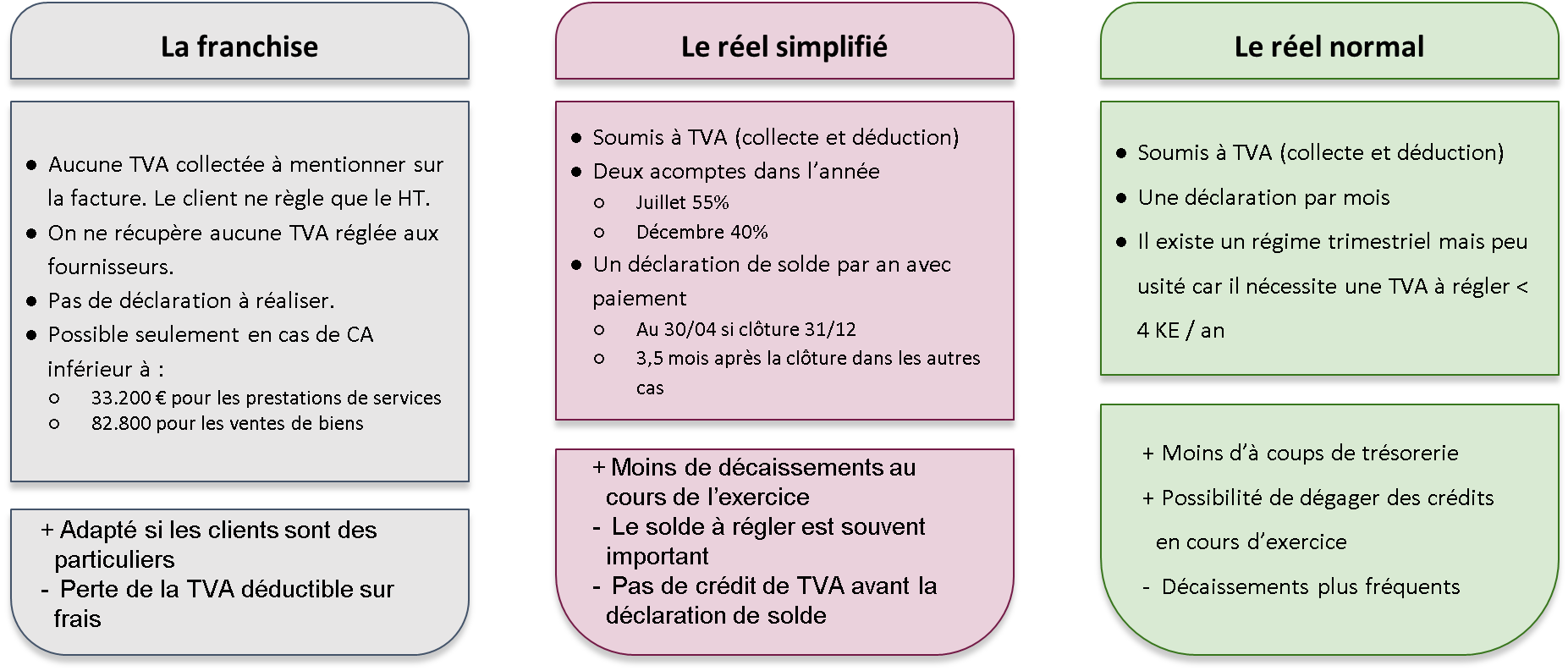 Dans tous les cas, veillez à bien estimer l’impact de la TVA sur votre trésorerie notamment au moment de la création de votre entreprise et durant son exploitation évidemment. Il arrive, en effet, fréquemment que vous versiez la TVA au trésor Public avant même de l’avoir encaissée auprès de votre client.
