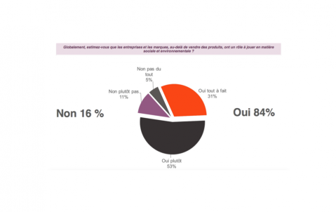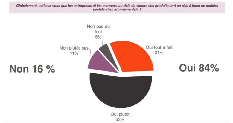 De même, 84% des répondants pensent que les entreprises et les marques, doivent dépasser leur rôle commercial pour jouer un rôle à la fois social et environnemental. Ainsi, les entreprises apparaissent clairement comme une des solutions pour améliorer ce manque de confiance.