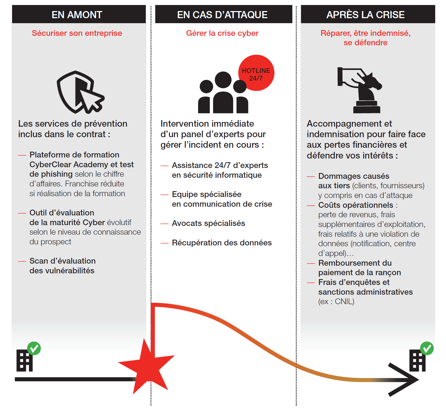 - et après la crise pour vous aider dans la reprise de l’activité et la gestion des recours possibles suite à cette attaque.